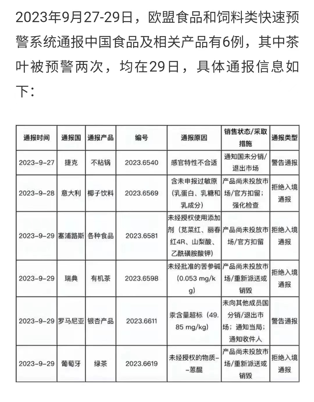 - 中國食品安全再次敲響警鐘!中國今年出口歐洲的部分食品遭拒。 其中:椰子飲料、各種食品、有機茶、銀杏產品…查看詳情